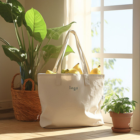 Organic Cotton Canvas Tote Shopping Bag with Printed Logo Reusable and for Gifts or Promotions